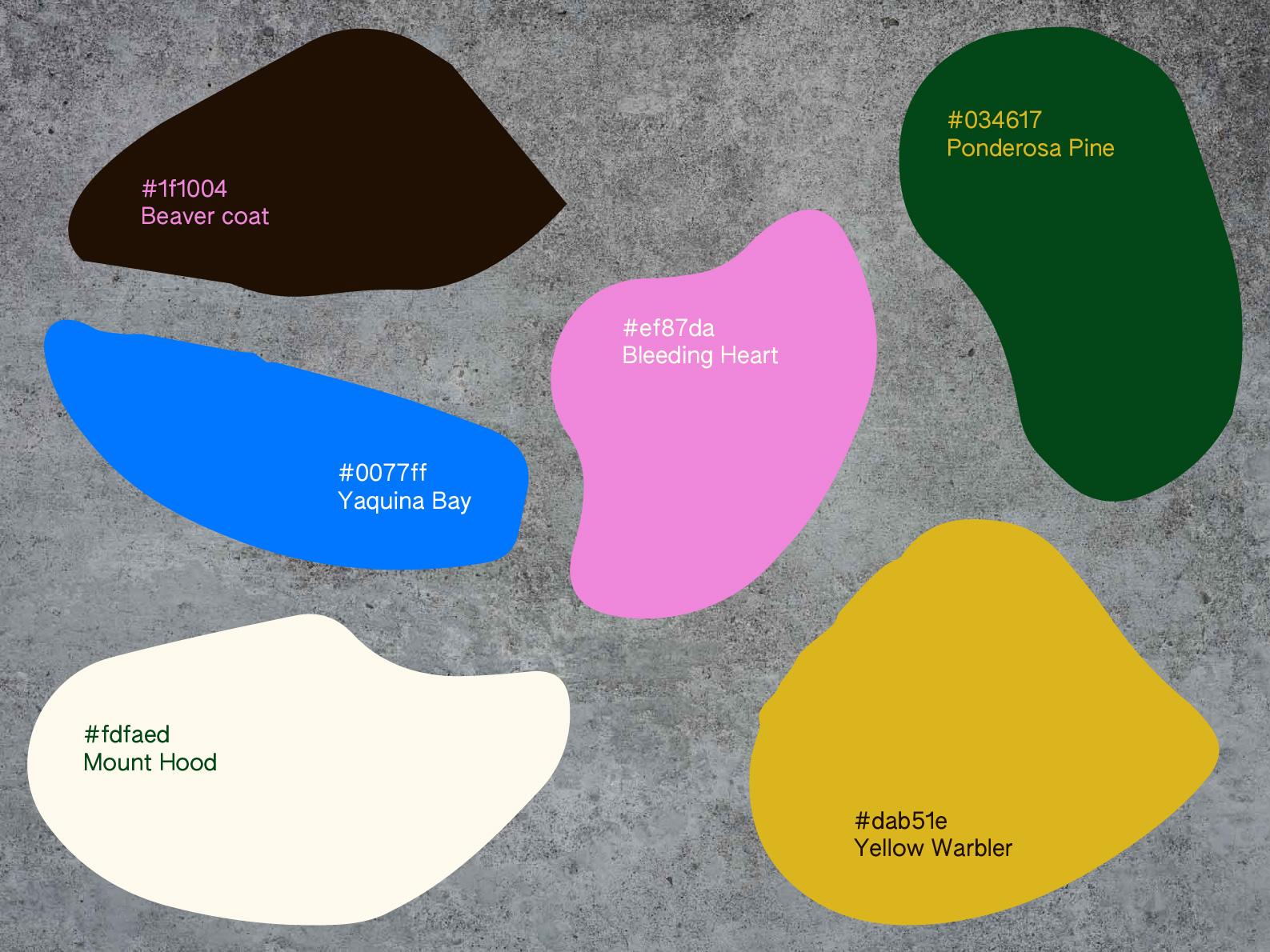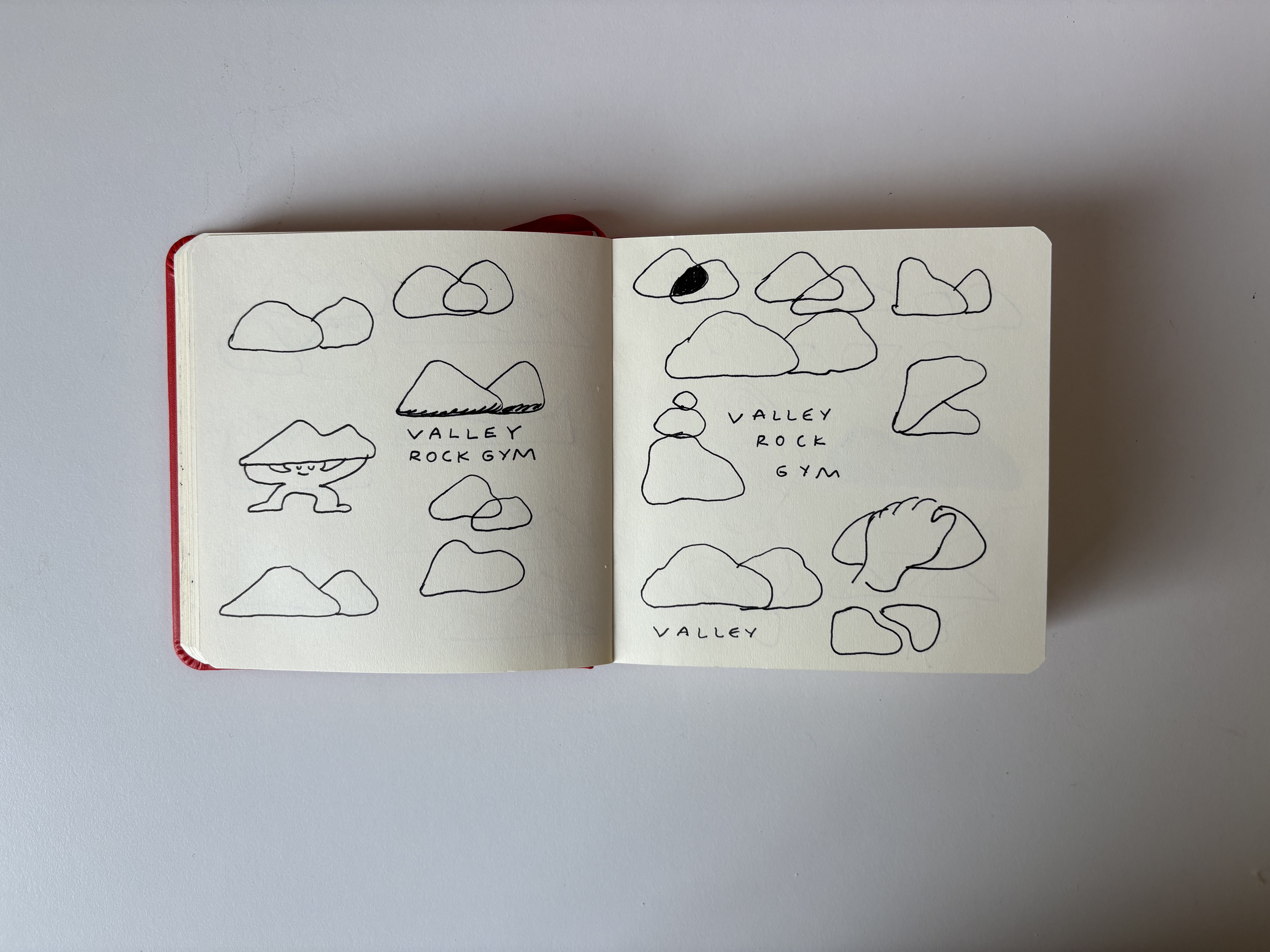 The logo uses organic shapes that evoke the mountains of the Willamette Valley and the shapes of indoor climbing holds. I was inspired by the image of overlapping hills coming together in a sort of venn diagram, which reminded me of how people come together in the gym. The wordmark, adapted from AUTHENTIC Sans, features angular and soft edges and a rugged, chalky texture.